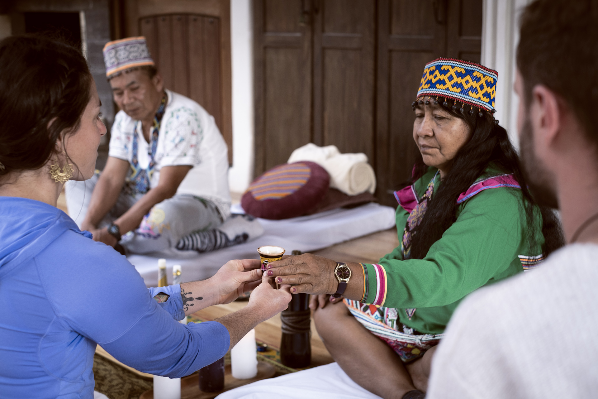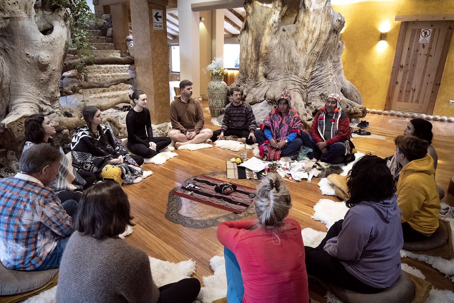 • Ayahuasca ceremonies (Shipibo tradition). • Andean rituals such as Despacho (Offerings to Pachamama). • Healing practices: temazcal, flower baths, sound journeys, yoga, meditation. • Integration circles before, during, and after. • Community: small, family-rooted groups (maximum 10 people).